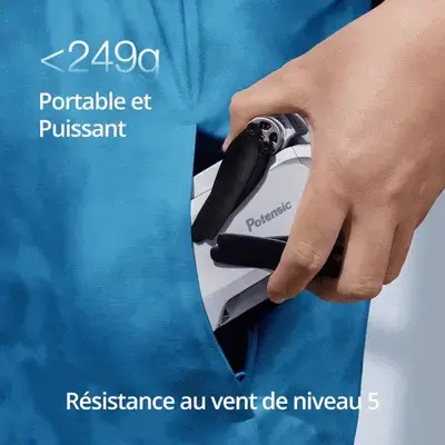 Pliable et ultra-léger (moins de 249g), il ne nécessite ni licence ni assurance. Conçu pour être compact et facilement transportable grâce à son poids réduit. De plus, il est fourni avec une valise rigide pour préserver le drone pendant le transport. L'application dédiée rend le contrôle et la configuration un jeu d'enfant. Les fonctionnalités de sécurité avancées, telles que le système de localisation et l'arrêt d'urgence, garantissent une protection complète du drone.